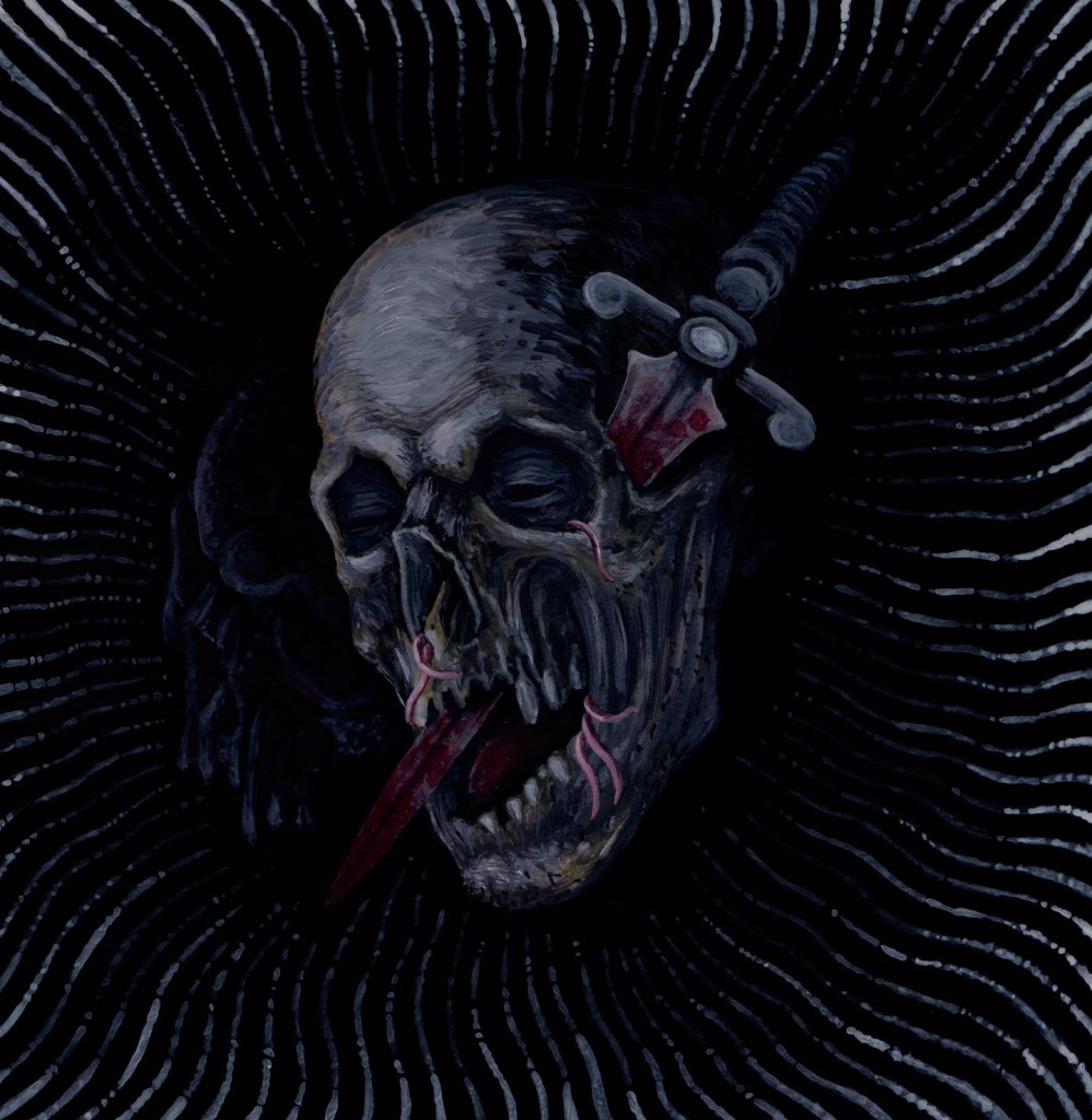 A pact forged in the oddest regions of Hell on tour in 2019, with Time’s Withering Shadow do Malthusian and Suffering Hour presents a sidestep from their normal offerings with this twisted trip through a dying mind. Both bands venture further into the experimental on their respective sides without losing sight of the horrible chaos they are known for. Time’s Withering Shadow presents five tracks across 41 minutes of exclusive material: the musical equivalent to being attacked by knife-wielding gypsies in some shithole, backwater truck stop in Eastern Europe. Mind-mangling death metal at its finest – and weirdest! CD cover and tracklisting are as follows:
