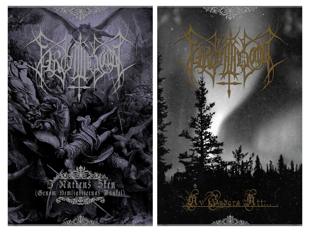 Begin transporting thyself with the brand-new tracks “Ondskans Svarta Broderskap” (from I Nattens Sken) and “Avtryck i Tiden Vavens Sista Stycke” (from Av Gudars Ätt) below: